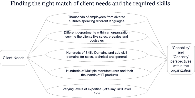 The picture below depicts this complexity of mapping client requirements to internal capability and available capacity: