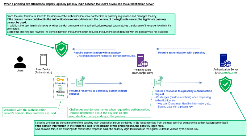 While users can attempt to avoid phishing attacks by distinguishing legitimate websites from fake ones, highly sophisticated phishing pages are often difficult, if not impossible, to identify. As a result, the FIDO authentication method-login using a passkey-has gained significant attention as an authentication technology inherently resistant to phishing.