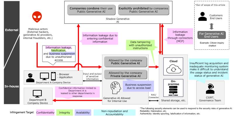 In recent years, many companies have adopted generative AI to enhance operational efficiency and productivity. Its effectiveness has been recognized in areas such as document creation, information organization, and customer support, and its applications continue to expand rapidly. However, as the use of generative AI grows, new security risks have emerged - such as the accidental input of confidential information and unintentional data leakage. Given these challenges, it is essential for organizations to understand these risks and establish clear countermeasures to ensure the safe and appropriate use of generative AI.