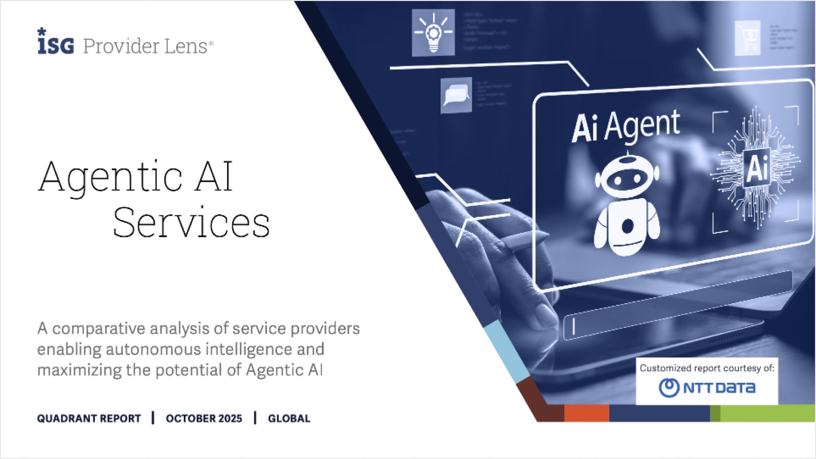 NTT DATA has been recognized as a Leader in the ISG Provider Lens® - Agentic AI Services 2025 - Global. The report highlights our depth of AI expertise, including comprehensive agentic AI consulting and implementation capabilities, supported by the NTT DATA Smart AI Agent™ Ecosystem and powered by deep industry expertise and robust global partnerships. We believe this recognition underscores our commitment to delivering measurable business outcomes through secure, scalable and responsible AI-driven innovation.