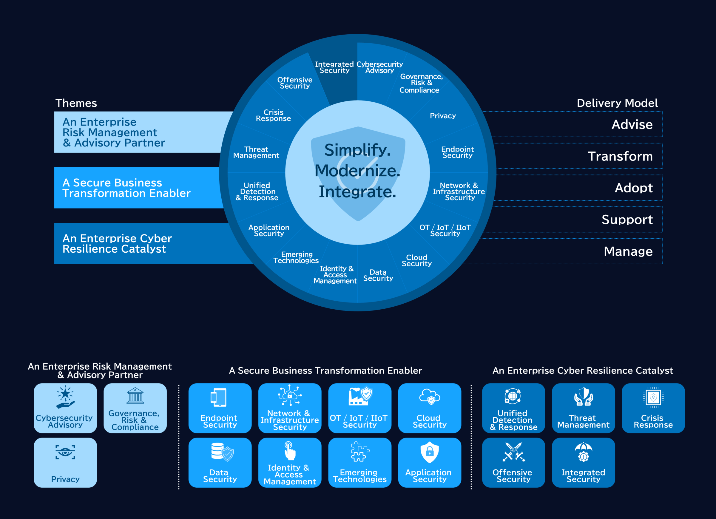 Our full lifecycle cybersecurity services portfolio helps you to proactively manage cyber risks, drive resilience and securely enable business innovation and growth.