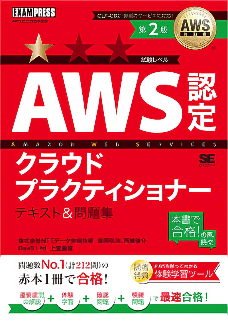 最新のAWS試験ガイド「CLF-C02」に完全対応した対策書。最新のサービス仕様にアップデートされており、212問という豊富な問題数を収録。実務未経験者でも解像度を高められる「AWS実践環境ガイド」が付属し、効率よく合格を目指せます。