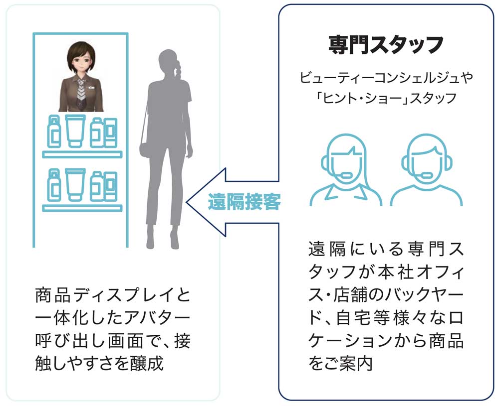 オペレーターの動きと連動するアバターを介して遠隔から商品を提案するデジタルストアを実現することで、ウィズコロナ時代の新しい接客のあり方と、スタッフの柔軟な働き方を実現します。