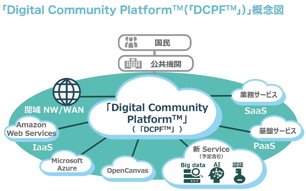 DXを進める公共機関向けにマルチクラウドインテグレーションサービス「Digital Community Platform™」を提供することで、社会基盤に資する運用品質やセキュリティ等の要件を満たしながら最適な民間クラウドサービスの選択・活用を支援し、職員の生産性向上と働き方変革に寄与します。