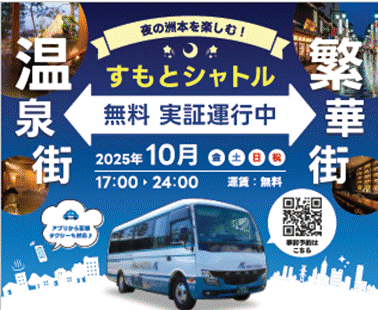 - 宿泊施設がある温泉街と繁華街を結ぶルートにおいて乗降場を設定し、夜間シャトルバスを運行