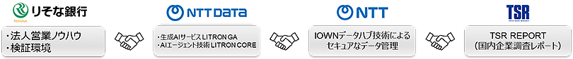 そこで、NTTデータはりそな銀行と共同で2024年より法人営業プロセスにおける企業情報分析の高度化・効率化の検証を開始し、2025年8月より、NTTと東京商工リサーチを加えた4社で共同実験を開始しました。