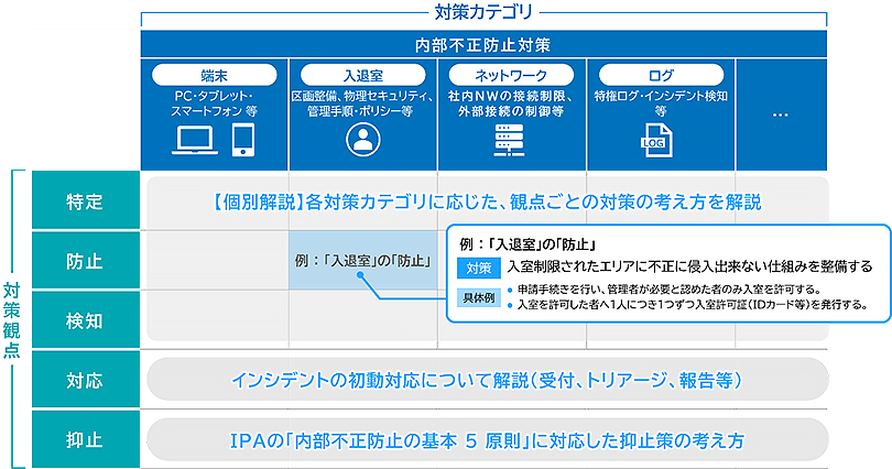 - 抑止:内部不正者の心理モデルを踏まえた、行為を思いとどまらせる環境づくり
