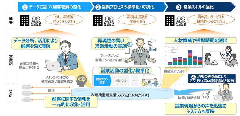 図:次世代営業支援システムで実現する営業プロセス変革の方向性
