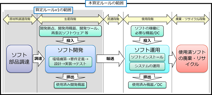 図2:算定対象範囲を規定したソフトウエア製品のライフサイクルフローのイメージ