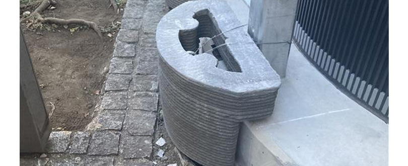 建物の基礎工事において、コンクリートを流し込むための型として3Dプリンター製の型枠を活用しました。従来の使い捨ての型枠を使わない工法とし、工事後も3Dプリンター製の型枠を残置することで、廃棄物削減を図りつつ3Dプリンター製外装材との調和が可能となるため、環境負荷低減および意匠性に配慮しています。