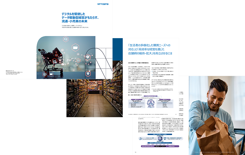NTT DATAは、流通・小売業をけん引する事業者様との多くの実績をもとに、生活者起点のサービス実装~業務オペレーションの高度化~バリューチェーン変革といった幅広い領域で流通・小売業のデジタルを活用した事業変革を推進しています。