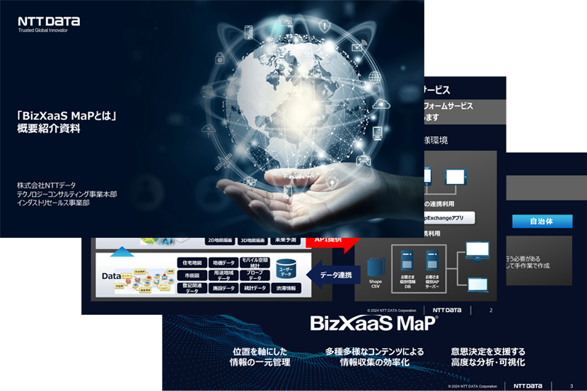BizXaaS MaPは、NTTデータが提供するクラウド型の地理情報システム(GIS)サービスです。