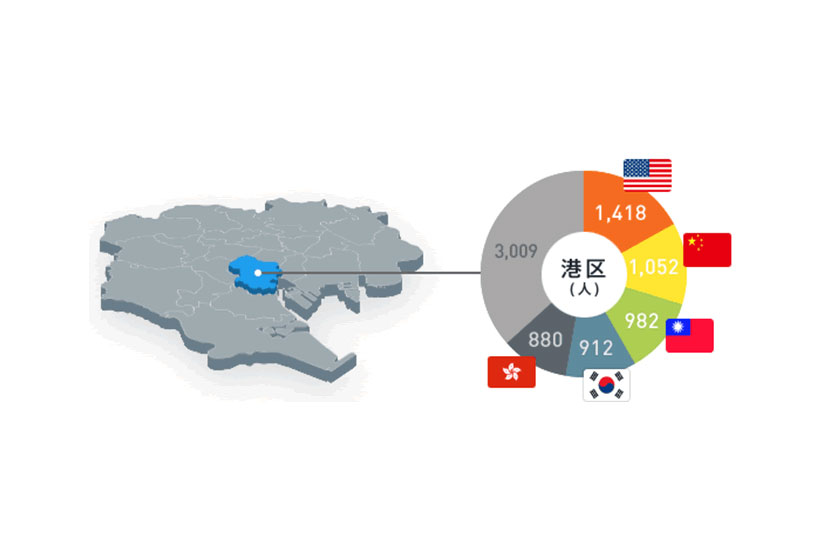 外国人来訪者の人口統計を国別に把握することができます。