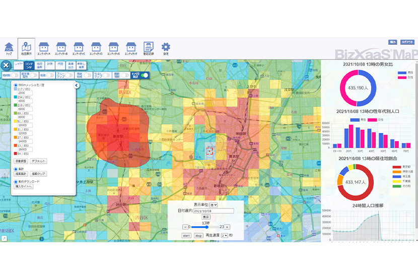人の流れや任意のエリア内での詳細な人口データを視覚的に把握できるモバイル空間統計リアルタイム版