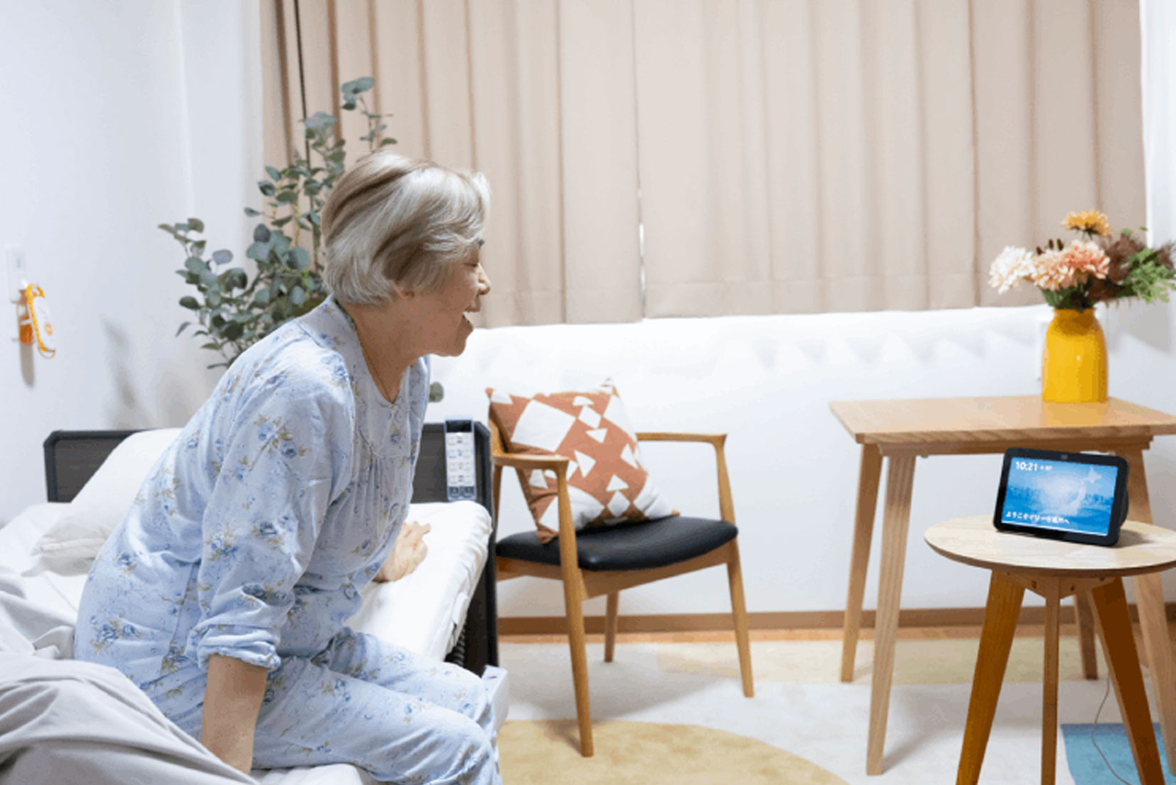 一人ひとりに寄り添う声かけやスマートホームの活用により、入居者の自立した暮らしを支援。