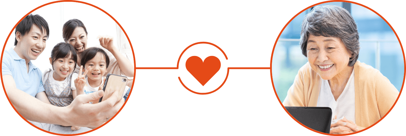 ビデオ通話や見守り機能で離れていても、ご家族とつながる。離れていても様子が分かって安心。