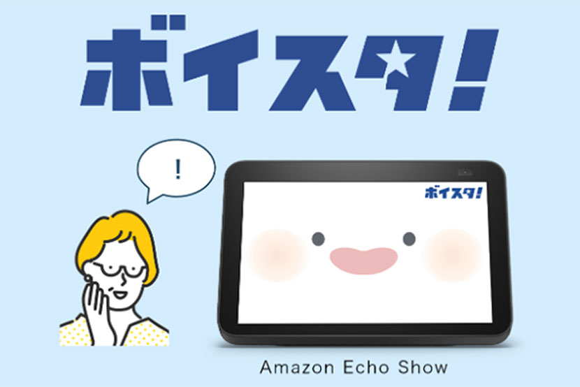 ボイスタ!は、Amazonが提供する「Alexa Smart Properties」を活用し、デジタルが苦手なシニアでも声をかけるだけで簡単に利用できる、Alexa搭載の画面付きスマートスピーカー「Amazon Echo Show」を用いて、シニアとの新しいコミュニケーション手段を確立します。