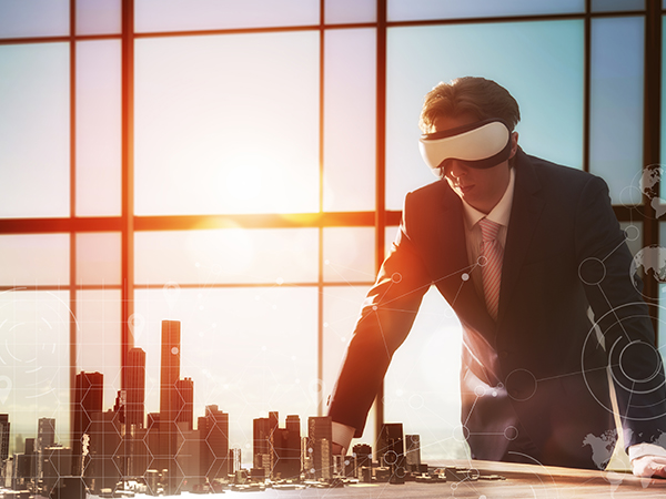 現実のヒト・モノ・コトのデジタルコピーを仮想空間上に表現する技術。データ分析や未来予測などのシミュレーションを実行し、その結果に基づく最適な方法や行動を現実にフィードバックする。