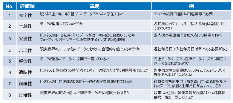 表1:一般的なデータ品質の評価軸