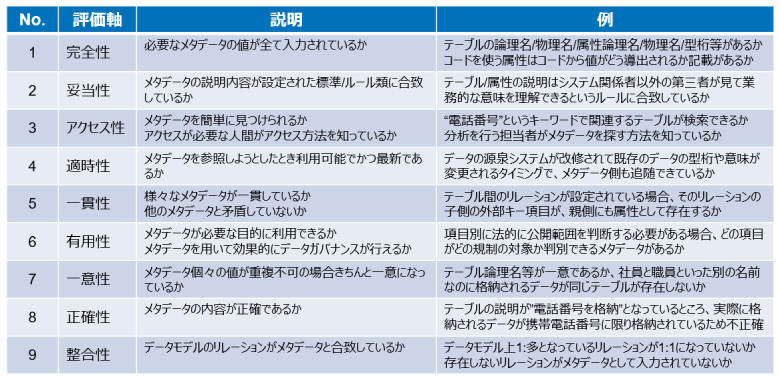 表3:メタデータ品質の一般的な評価軸