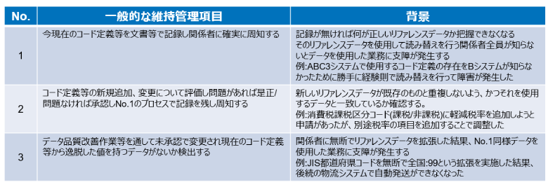 表5:リファレンスデータの維持管理項目例