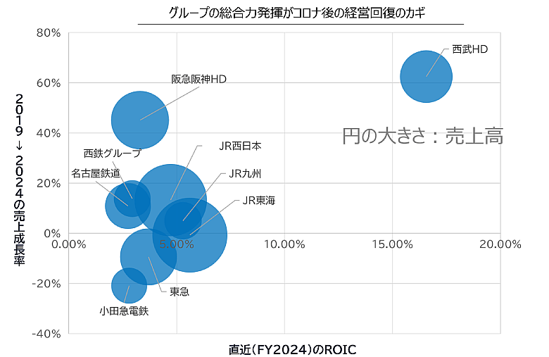 例えば東急は、交通×不動産のシナジーをコアとしながら事業ポートフォリオのマネジメントを強化。西武ホールディングスは、保有する資産を戦略的に減らしてROIC(投下資本利益率)を大きく伸ばしている。さらに、西鉄グループは、福岡市内に開業したONE FUKUOKA BLDG.をはじめ不動産ポテンシャルを高めている。