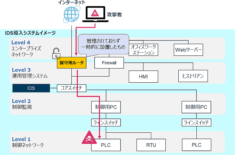 図2:IDS導入システム構成および攻撃経路のイメージ