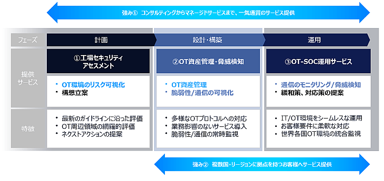 NTTデータは、IT領域に加えて、製造業をはじめとしたOT環境に特化したSOC運用の実績もあり、OT通信プロトコルを理解したアナリストによるアラート分析と、現場設備を止めない安全性重視のインシデント対応の判断が可能です。これらは自社サービス『UnifiedMDR™ for OT Security』として展開しています。