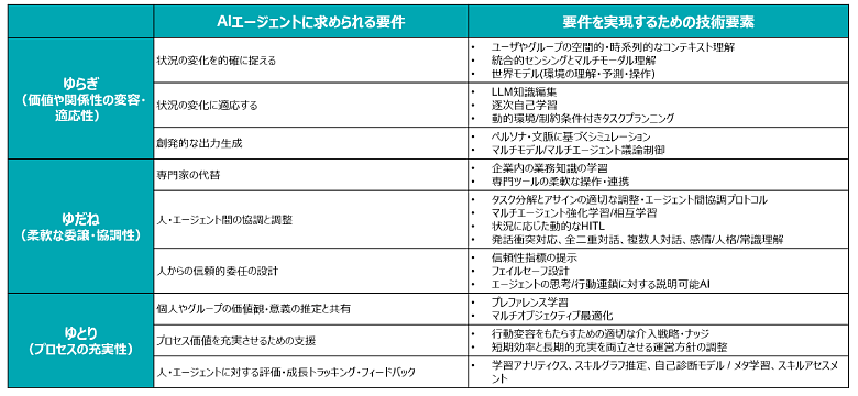 表2:持続可能な価値創出のためのAIエージェント要件と技術要素