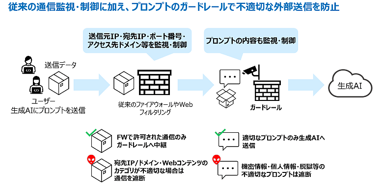 図1:従来のファイアウォール/Webフィルタリングにガードレールを追加した際のイメージ図