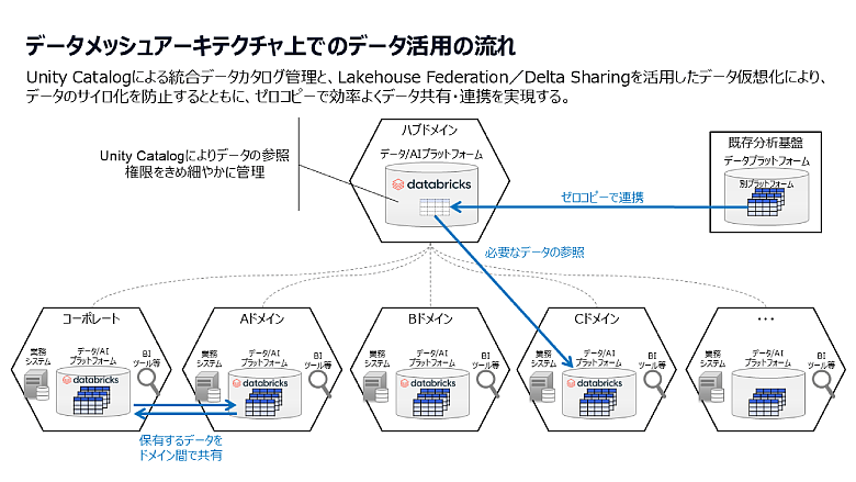 図2:データメッシュアーキテクチャ上でのデータ活用の流れ