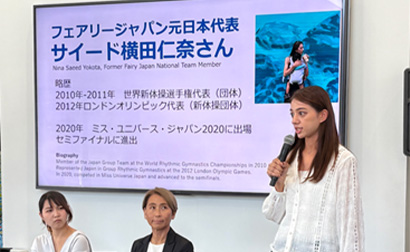 新体操元日本代表の藤野朱美さん、フェアリージャパン元選手のサイード横田仁奈さんも、復興に向けた質問や応援メッセージを届けました。会場では、真剣に耳を傾ける来場者の姿が印象的でした。