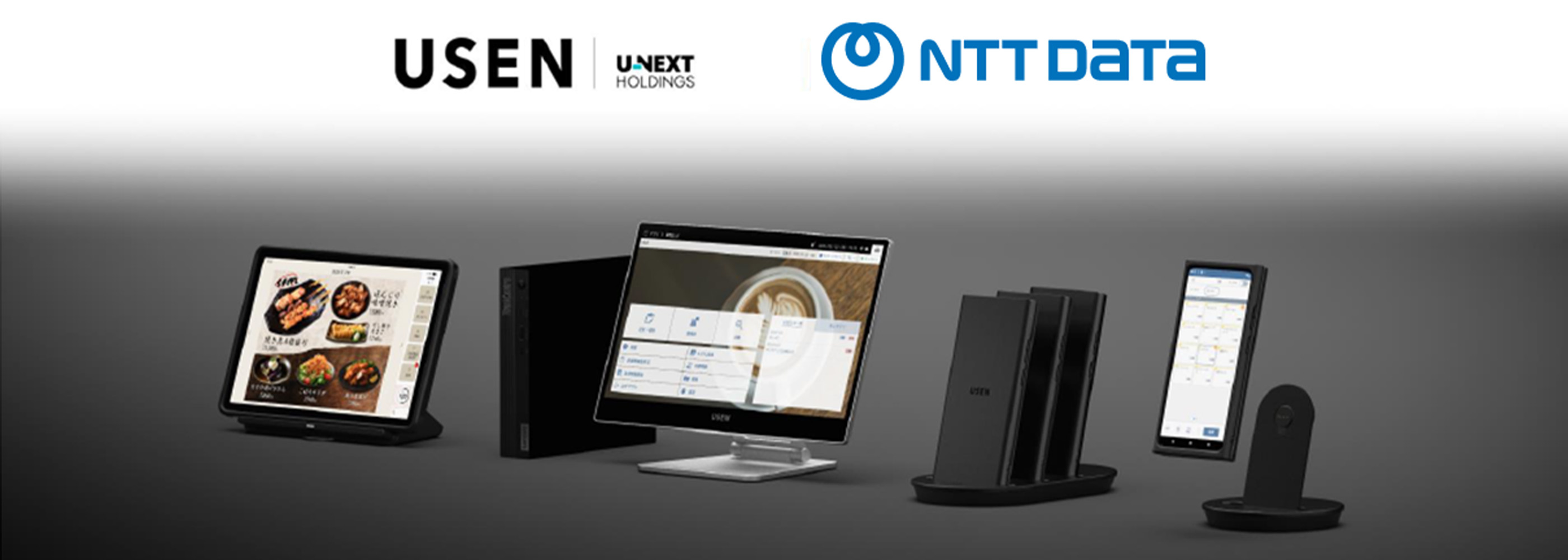 ※USEN(U-NEXT.HD)様とNTTデータが共同開発専用ハードウェアを備えた飲食店向け高機能POS『USENレジ』販売開始はこちら: